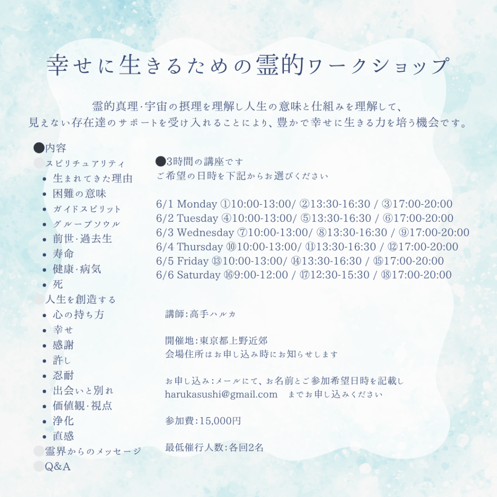 「幸せに生きるための霊的ワークショップ」
